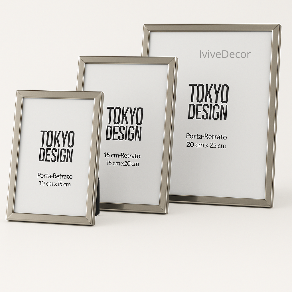 Kit 3 Porta Retratos (10x15cm/15x20cm/20x25cm)Prata Espelhado - Vidro